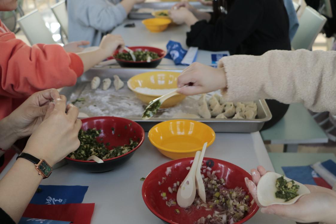 本次活动由“石榴籽”分享会、“石榴籽”包饺子及品尝民族美食三部分构成。在大家的团结协作下,盘盘水饺整齐的码在桌上。在美食品尝环节,随着椒麻鸡、抓饭等具有民族特色的美食登场,会场氛围推至高潮。同学们品尝着共同制作的水饺和维吾尔族同学参与烹饪的抓饭等民族美食,在不知不觉中拉近了彼此的距离。