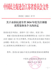 日前,中国民主促进会江苏省委员会公布《关于表彰民进全省2024年度关注课题获奖集体及个人的决定》,公司经...